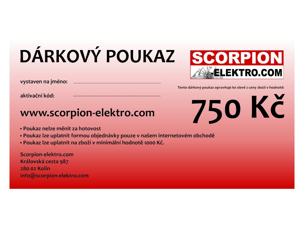 Krásný dárek pro Vaše přátele, zaměstnance i obchodní partnery. Potěšte je při jakékoliv příležitosti dárkovou poukázkou Scorpion-Elektro.com Celý popis