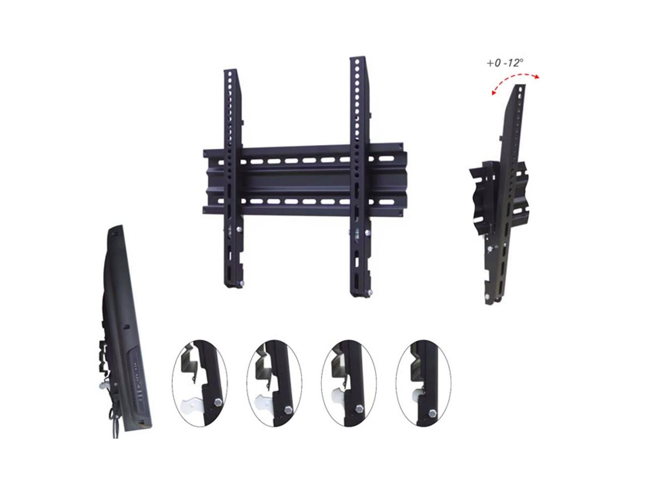Velmi kvalitní náklopný držák s nosností 50kg. Obrazovku Tv lze sklopit směrem dolů o 12°. Držák TV je univerzální a doporučujeme jej pro TV do 52" (v závislosti na VESA standartu). Instalace držáku je poměrně snadná a rychlá. Součástí balení je i vodováha pro přesnou montáž. Samozřejmostí je instalační materiál.