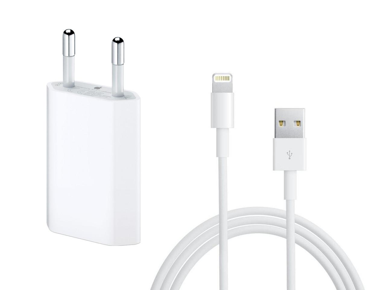 Nabíjecí sada pro Apple iPhone, iPad, adapter + kabel Lightning, 1m, bilý