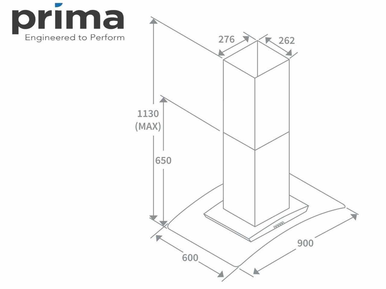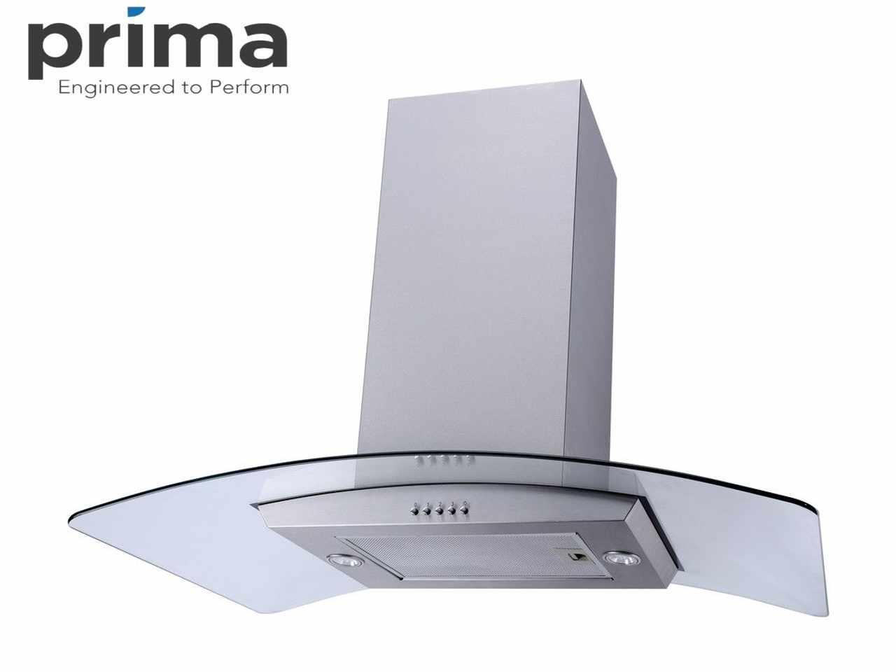 90 cm široká zakřivená skleněná ostrůvková digestoř značky Prima. Celý popis