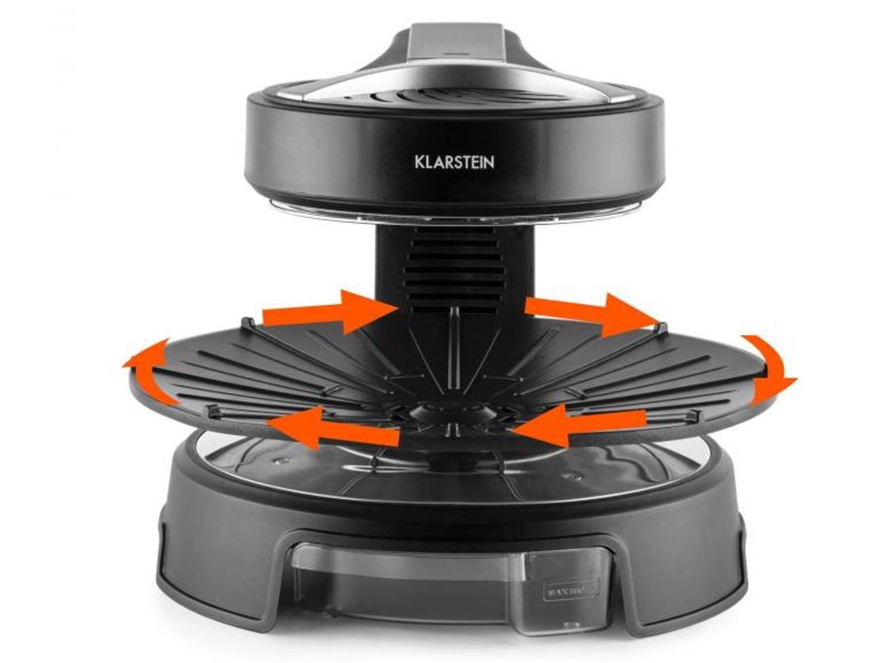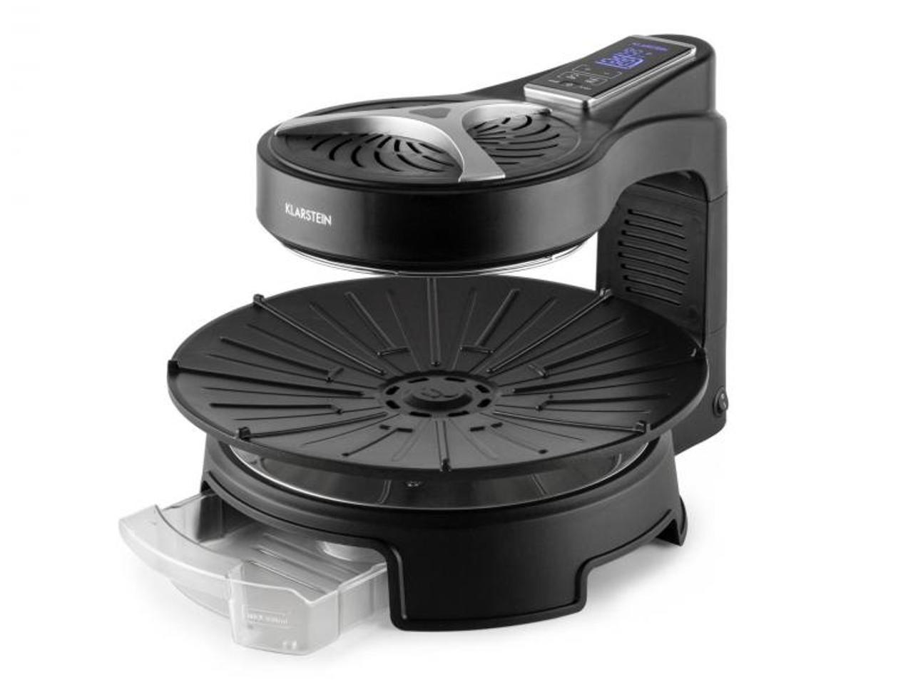 Nastavte požadovanou dobu grilování a talíř začíná otáčet. Hlíva s česnekovou kůrkou, chilli krevety se šafránem nebo středně propečený hovězí steak. Gurmáni grilovaného jídla mohou počítat s křupavým a šťavnatým výsledkem, protože otočný grilovací talíř se postará o rovnoměrné rozložení tepla. Přebytečný tuk odtéká do vyjímatelné záchytné nádoby. Tak si lze pochutnávat bez pocitu viny.
