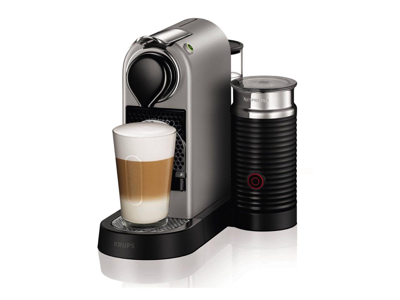 Kávovar na kapsle + integrovaný šlehač mléka, tlak 19 bar, aut. a programovatelné množství kávy, 2 velikosti: Espresso a Lungo, příprava Cappuccino, Latte Macchiato, studená/teplá mléčná pěna, teplé mléko, sklopná odkapávací mřížka, nádržka na vodu 1 l, rychlý ohřev za pouhých 25 s, režim aut. vypnutí po 9 min. Celý popis