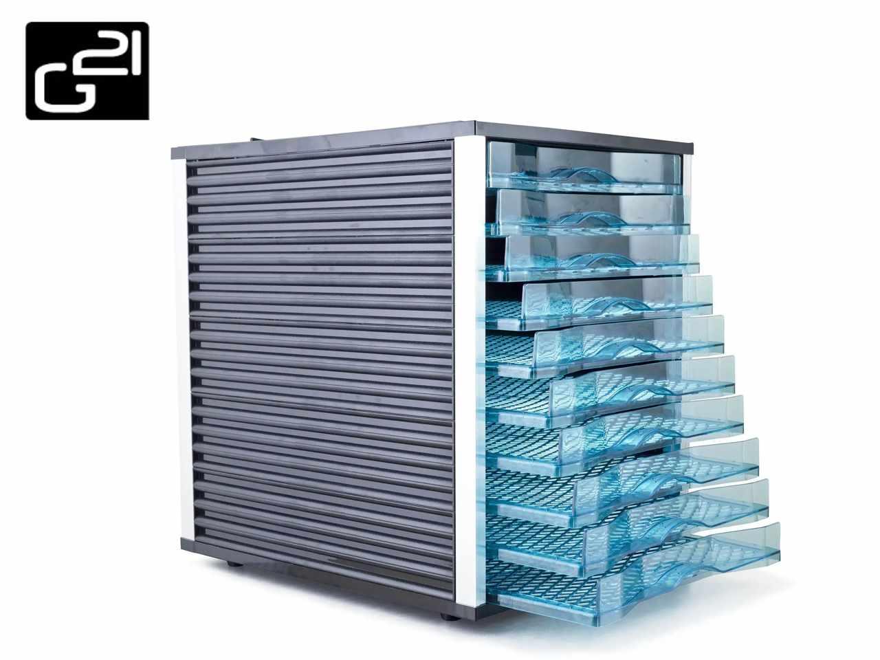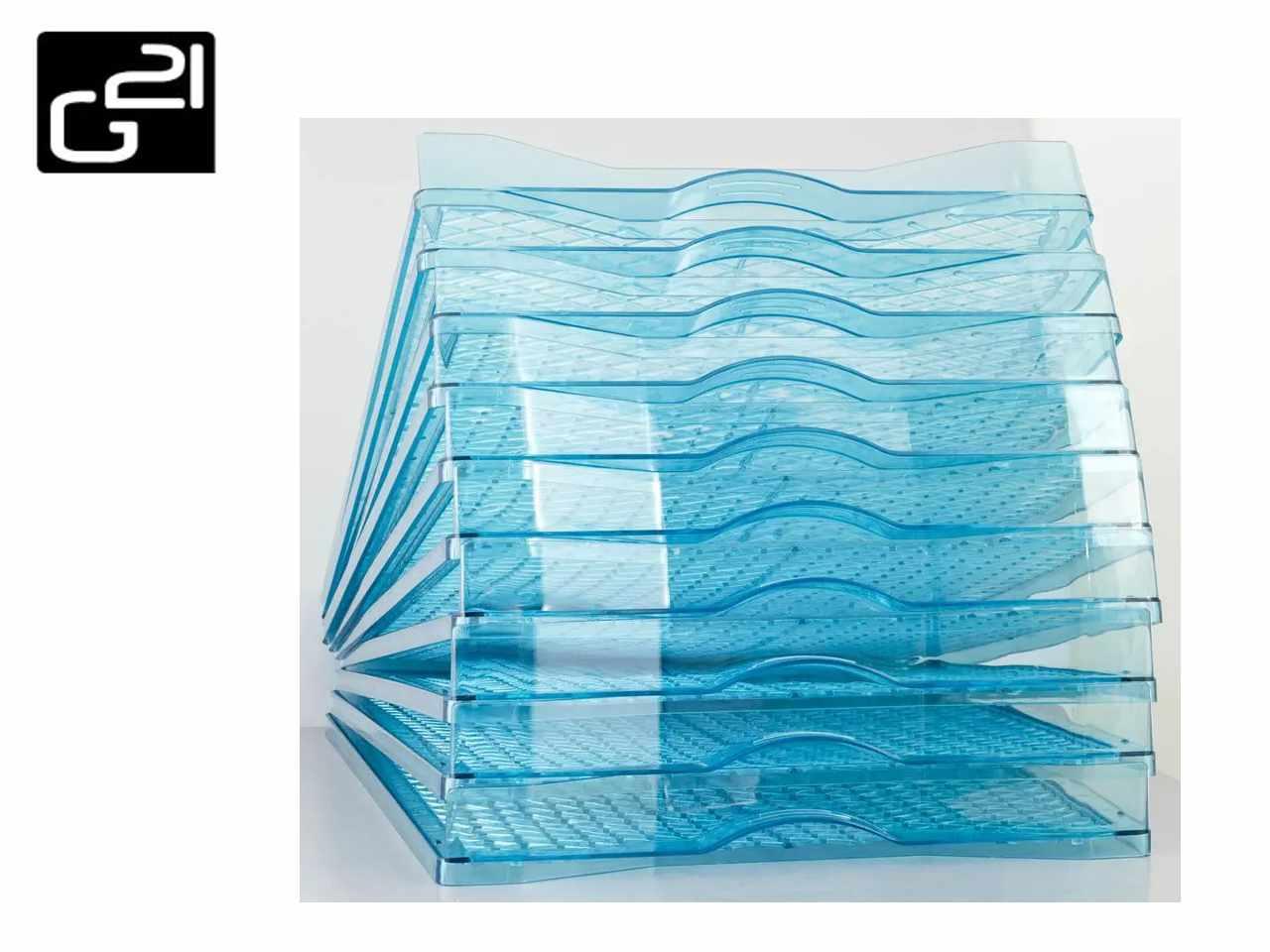Nemusíte být přímo vyznavačem lahodné chuti sušených potravin, abyste ocenili výhody G21 Harmony big. Vedle ovoce a zeleniny, bylinek a obilovin si poradí například i s namarinovanými proužky masa, které ocení všichni dobrodruzi jako zásobu kalorií při dlouhých výšlapech, kempování nebo třeba jen pro skvělou chuť. Jak zařízení funguje? Jednodušeji, než se na první pohled může zdát. Skládá se z vlastního těla o velikosti 34 x 38 cm o výkonu 800 W a deseti platech s deseti sušícími vložkami s jemným síťováním. Na ty rozkrájené pochutiny rozkládáte.