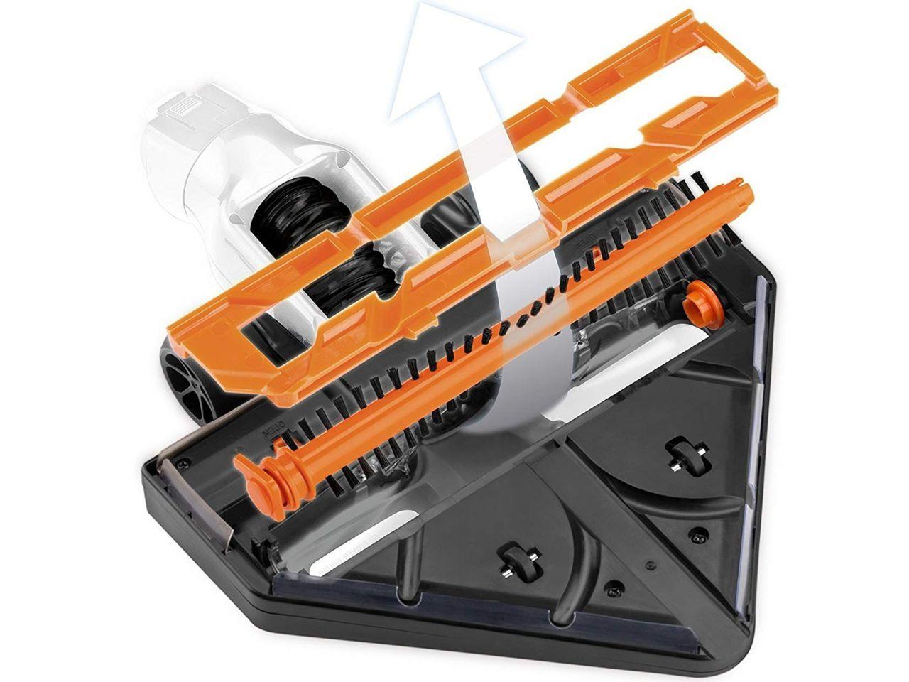 Sací hubice má tvar písmene „V“, takže se snadno dostane i do ostrých rohů a jiných špatně přístupných míst, kde běžnou rovnou hubicí nemáte šanci vysávat. Výrobce tuto hlavici navíc osadil energeticky úsporným LED osvětlením, díky němuž můžete pohodlně vysávat například i pod postelí či pod jiným nábytkem a nestane se vám, že byste omylem vysáli drobnosti ležící na zemi. Potěší i ovládání umístěné přímo na madle, kde ho máte vždy po ruce a nemusíte se při úklidu zbytečně ohýbat.