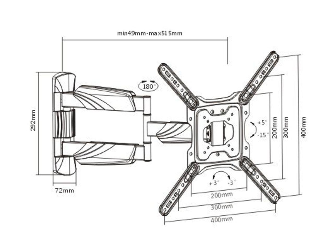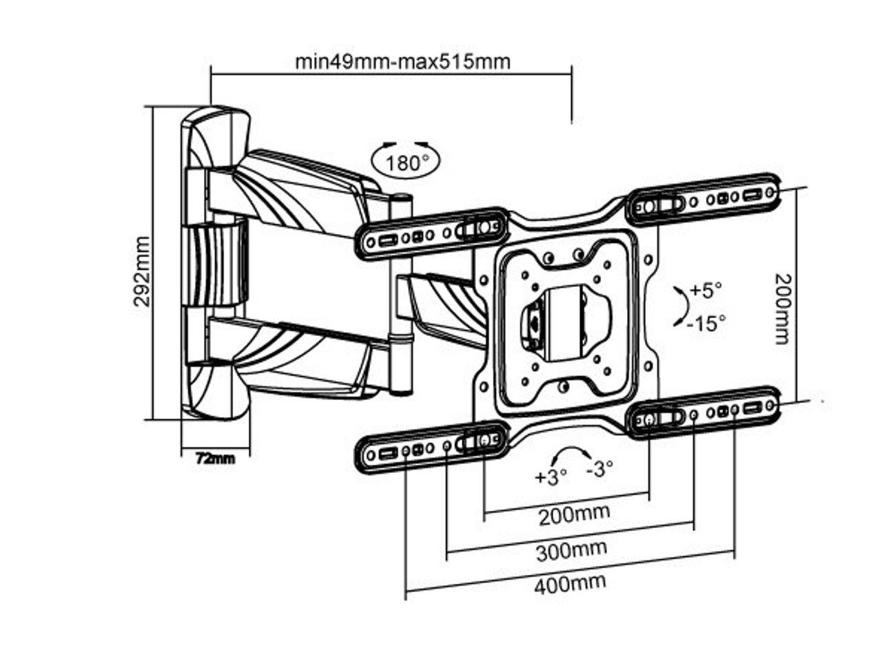 Výsuvný, nastavení vzdálenosti od zdi: 49mm až 515mm
