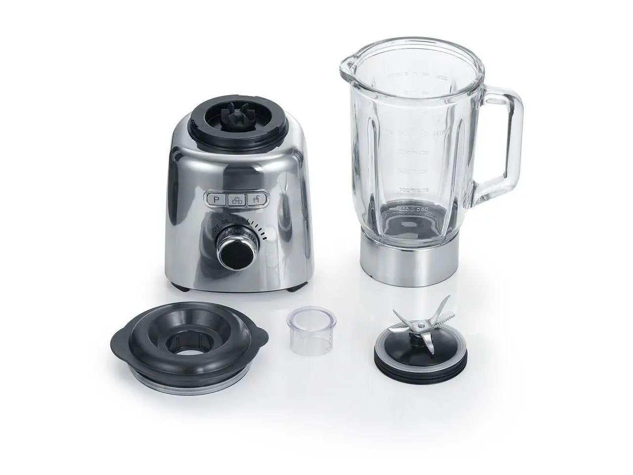 Stolní mixér Severin SM 3710 z leštěné nerezové oceli. Přístroj má kvalitní odnímatelnou mixovací nádobu ze skla pro snadné nalévání. Smoothie program je vhodný pro rychlé a dokonalé koktejly. Součástí skleněné nádoby je odnímatelné víko s integrovanou odměrkou. Celý popis
