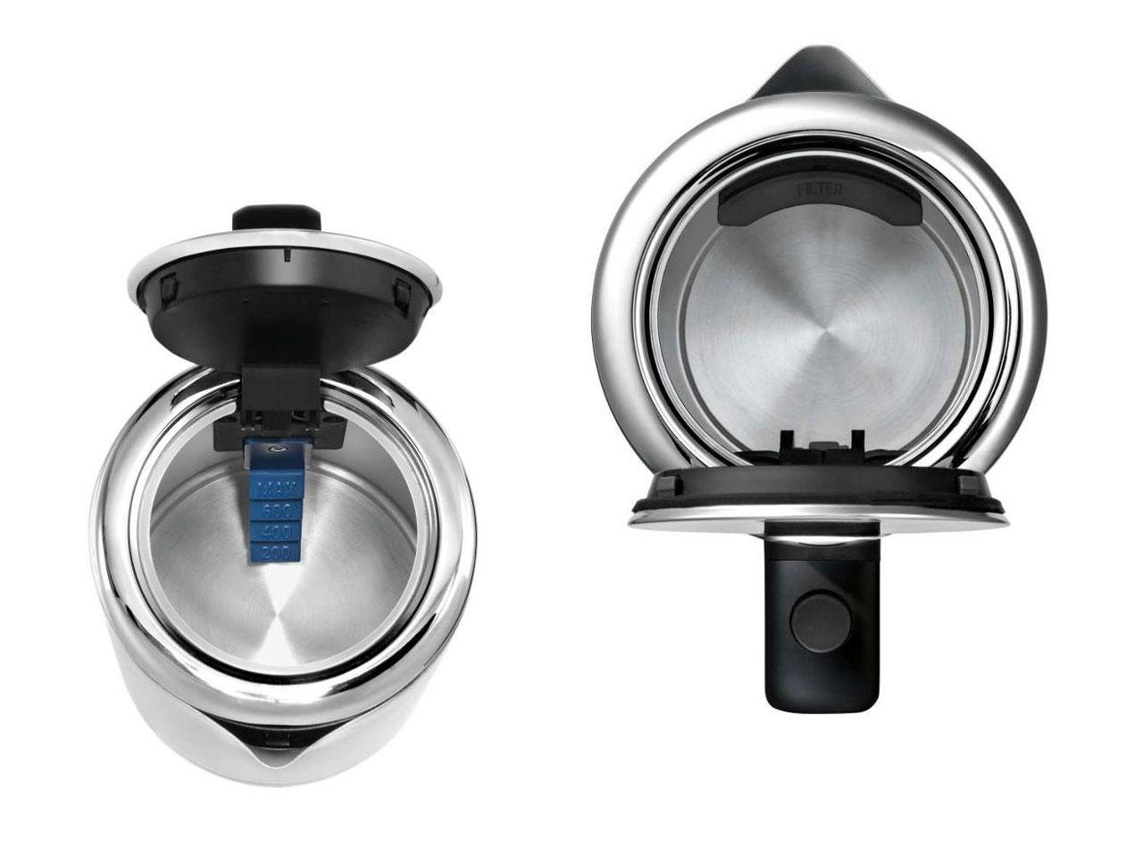 Díky speciálnímu tlačítku otevřete víko jednou rukou. Navíc se nabízí i vnitřní ukazatel vodní hladiny, abyste vždy připravili přesně tolik vody, kolik potřebujete a ušetřili čas i peníze.