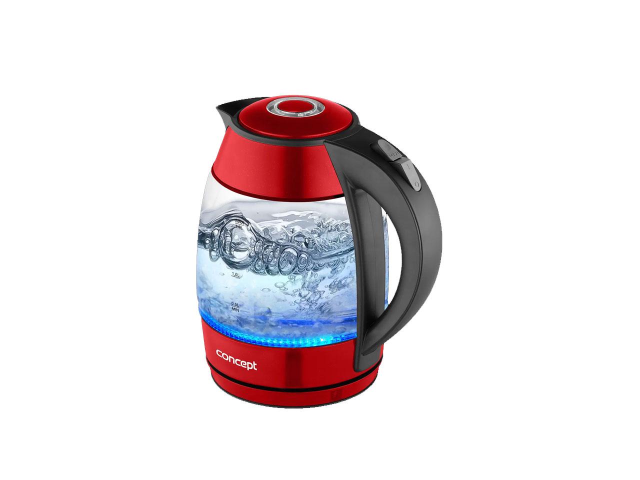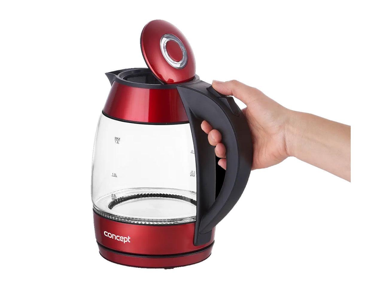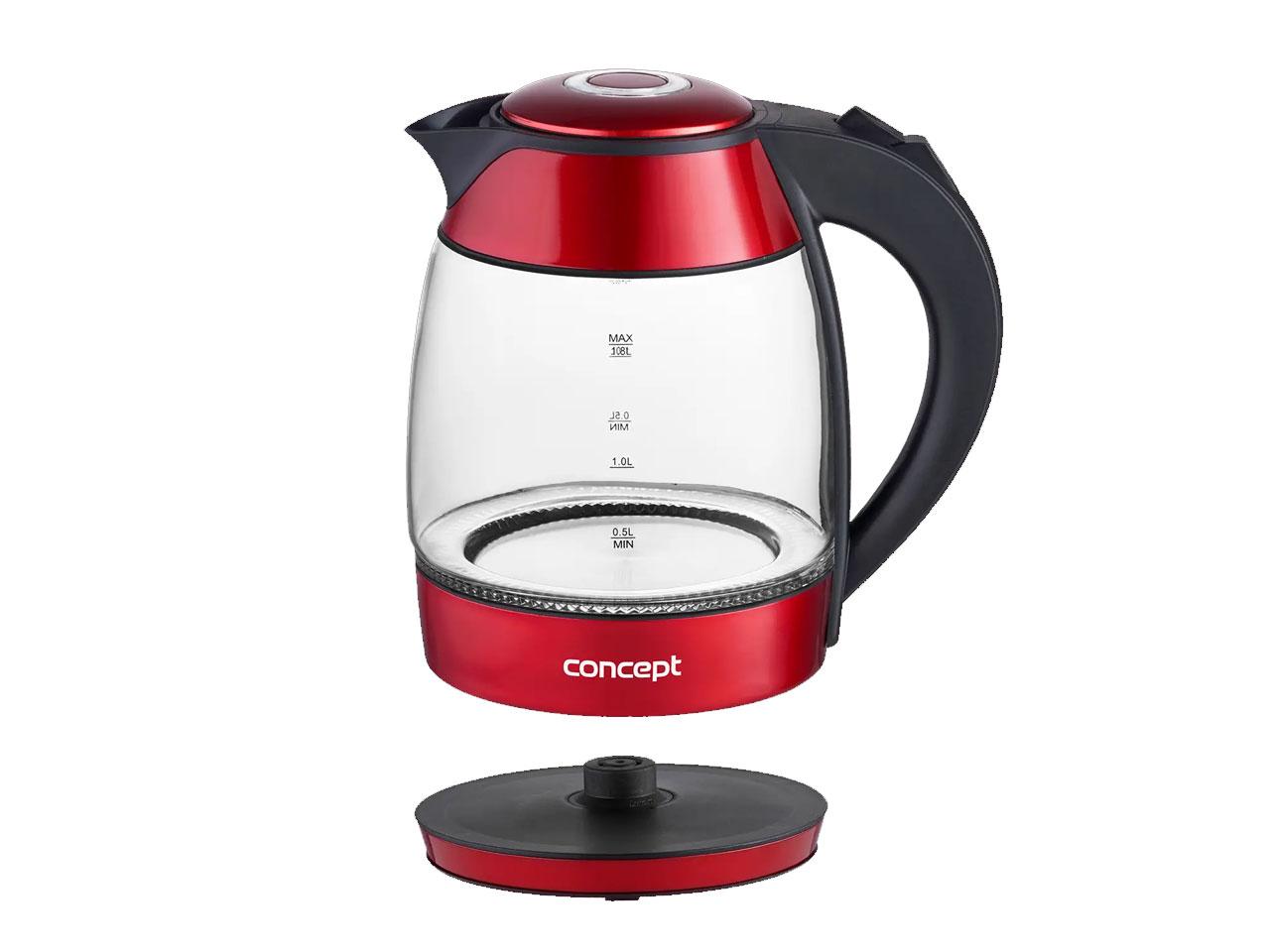 Rychlovarná konvice CONCEPT RK4053 v červeném provedení. Objem konvice je 1,8 litrů. Konvička je vybavena dvojnásobným bezpečnostním systémem. Ten Vám zaručí, že se po dovaření vody sama vypne. Pokud sejmete konvici z podstavce a vrátíte, tak se sama už nezapne. Celý popis