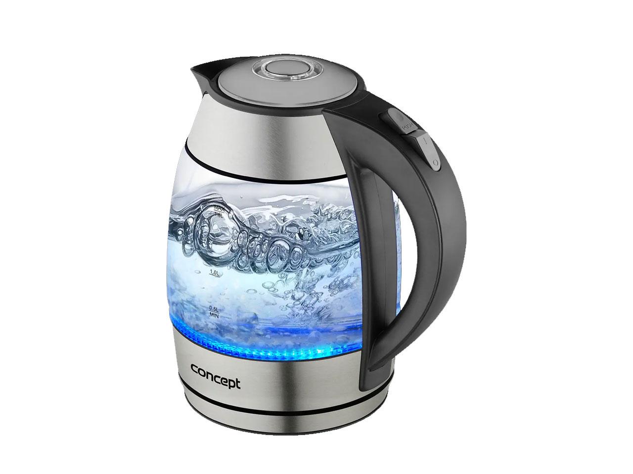 Rychlovarná konvice Concept RK 4050 v nerezové barvě. Konvice je vyrobená z velmi pevného, zdravotně nezávadného borosilikátového skla odolného proti skvrnám. Skleněná konvice vám umožní snadno kontrolovat množství vody uvnitř. Kovový lem okolo hrdla konvice zabezpečí větší odolnost konvice při neopatrné manipulaci během plnění vodou. Velký objem 1,8 l vám umožní uvařit vodu na čaj pro celou rodinu najednou. Ani návštěva nebude muset čekat. Celý popis