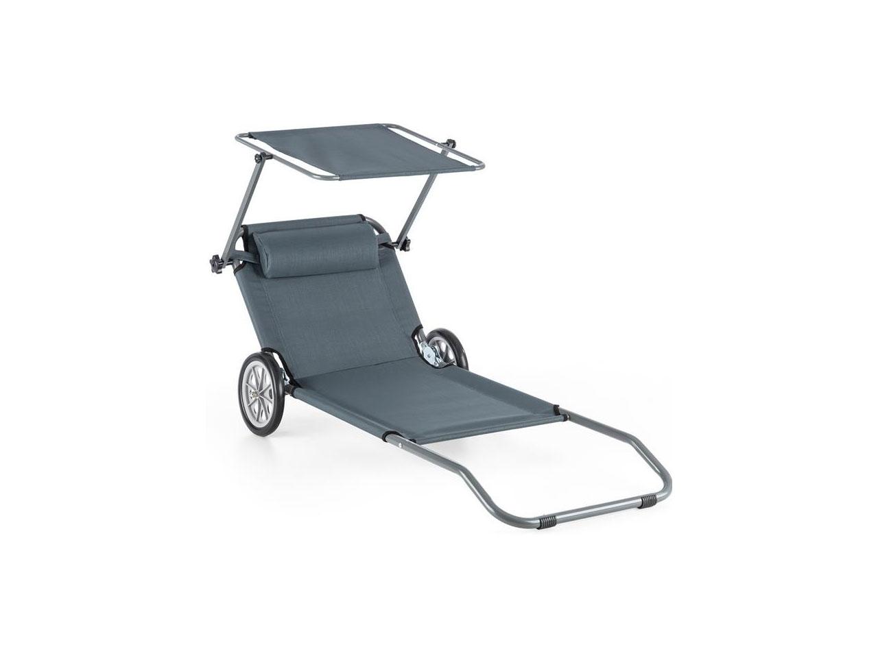 Nastavte opěradlo do polohy vsedě, přizpůsobte si stříšku proti slunci a spolu s pohodlným polštářem máte vhodné místo pro čtení ve stínu. Mezitím se lze osvěžit ve vodě, a pak zpět k slunění. Žádný problém, protože materiál lehátka je z rychleschnoucí polyesterové mřížkované tkaniny. Lehátko je polstrované pěnou a má relaxační polštář, takže splní všechna přání pro komfort.