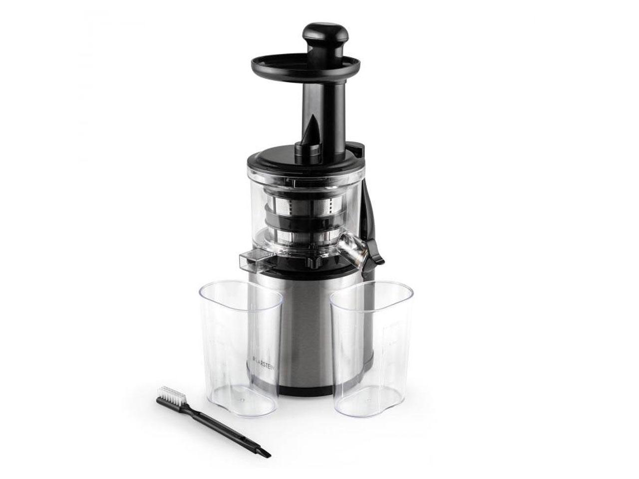 Pomeranče, jablka, bobulové ovoce, citrony, mrkve či rajčata tvoří jen zlomek plodů, z nichž lze získat lahodný nápoj. Mimořádně chutnými jsou různé mixy, jako např třešeň-banán, jahoda-meduňka či jablko-meloun. Díky malému počtu otáček za minutu (80/min) se zachovají v šťávě všechny vitamíny a minerály. 200W motorek pracuje velmi potichu a neruší přípravou šťávy okolí. Odšťavňovač si s většinou práce poradí i sám, občas třeba pěchovacím válečkem zatlačit ovoce (záleží na druhu plodů). V případě zaseknutí zbytků plodů lze pro jejich uvolnění zapnout zpětný chod. Jemné mikro sítko účinně odděluje zbytky ovoce od šťávy, a ty pak lze dále využít např do koláčů či dezertů. Zařízení také dbá na absolutní bezpečnost - motorek je opatřen ochrannou pojistkou a 4 protiskluzové podložky garantují mimořádnou stabilitu přístroje. Čištění probíhá díky rozkládací konstrukci odšťavňovače rychle a jednoduše. Klarstein Slowjuicer se vyznačuje oblým, homogenním jazykem formy nerezové konstrukce s černými umělohmotnými částmi. Díky kompaktním rozměrům se vejde do každé kuchyně a na každé místo.