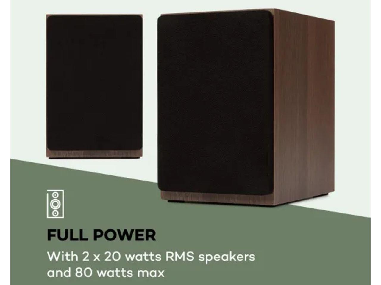 Plnou silou: s reproduktory 2x 20 W RMS a max. výkonem 80 W.