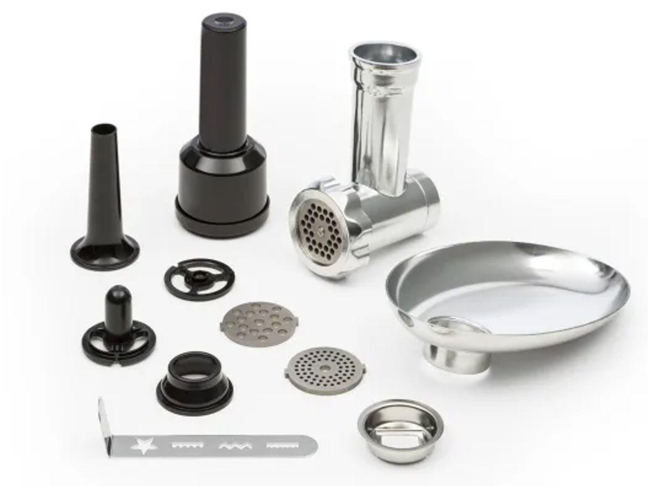 Mlýnek na maso, plnící miska a nástavec na těsto z ušlechtilé oceli