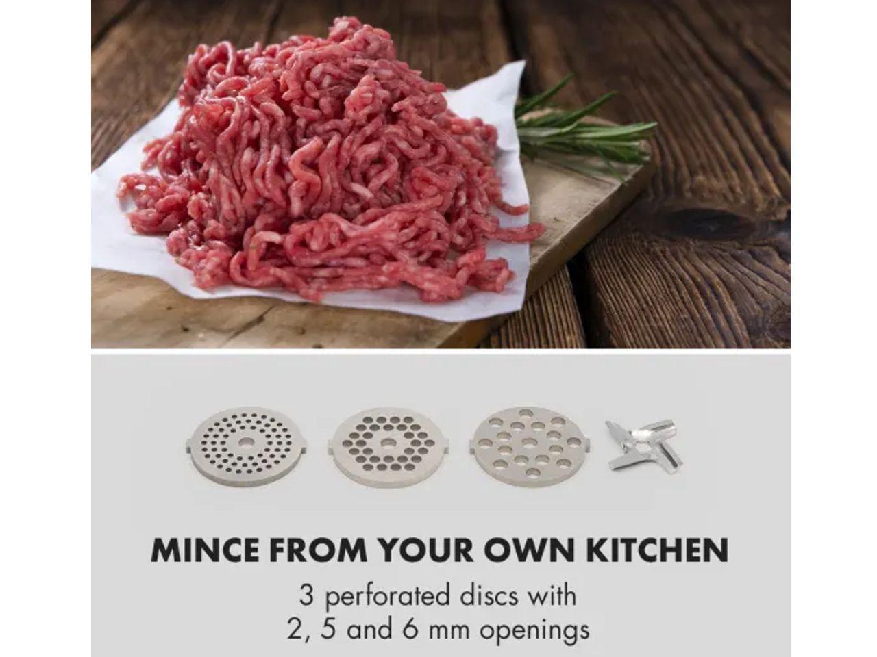 Mleté maso z vlastní kuchyně: 3 perforované disky s 2, 5 a 6 mm otvory na jemné až hrubé mleté maso
