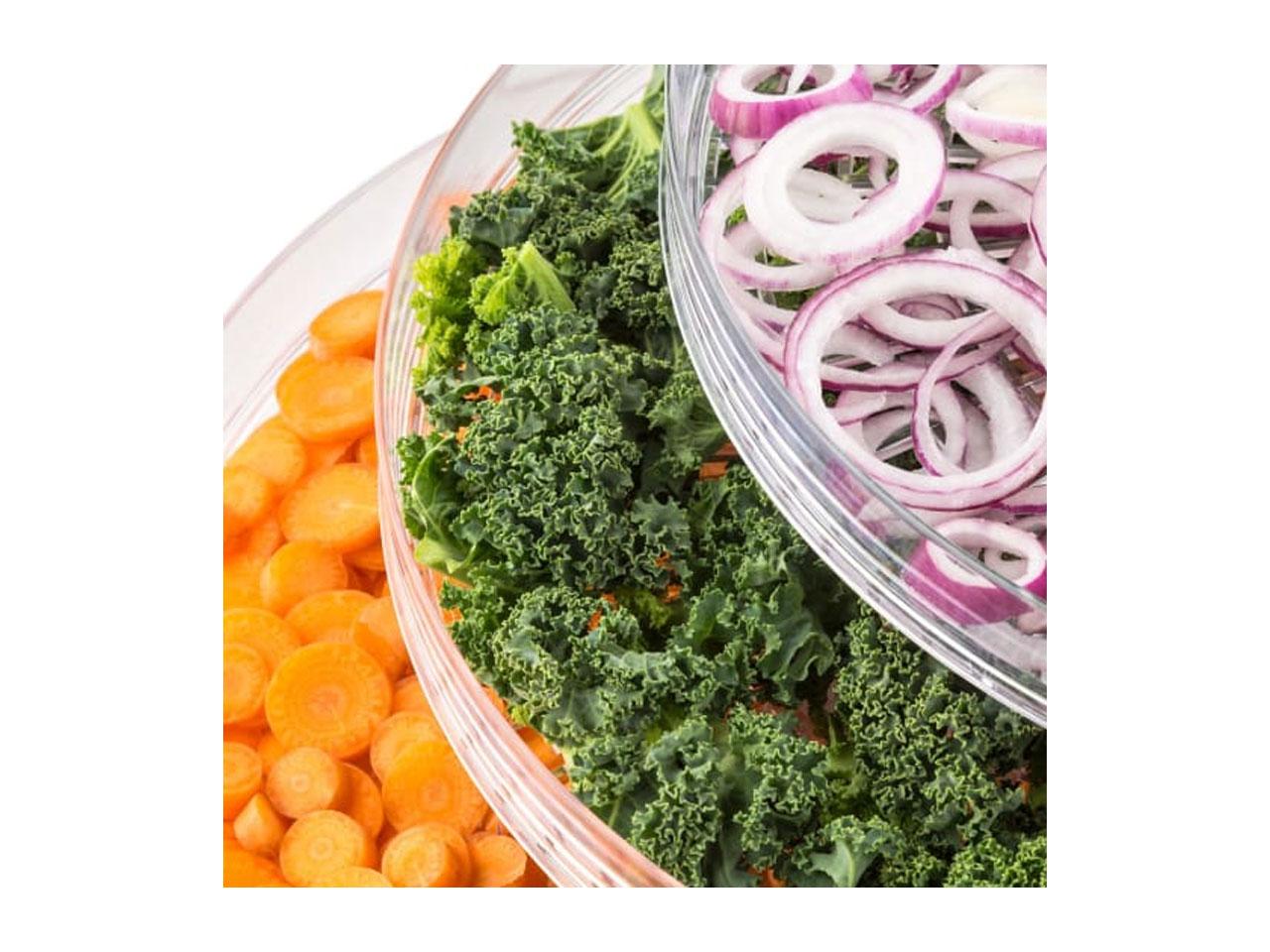 Díky cirkulaci vzduchu suší sušička oneConcept Bonsai mnohem rychleji a energeticky úsporněji. Teplo je rozloženo rovnoměrně na všechna čtyři patra. Při teplotě 40–70 °C mění zařízení rozmanitost přírody na kvalitní občerstvení a přísady. Ať už sušené ovoce, zeleninové chipsy, zahradní bylinky, rajčata nebo bobulovité ovoce – díky jemné síťovině se najde prostor pro všechno.