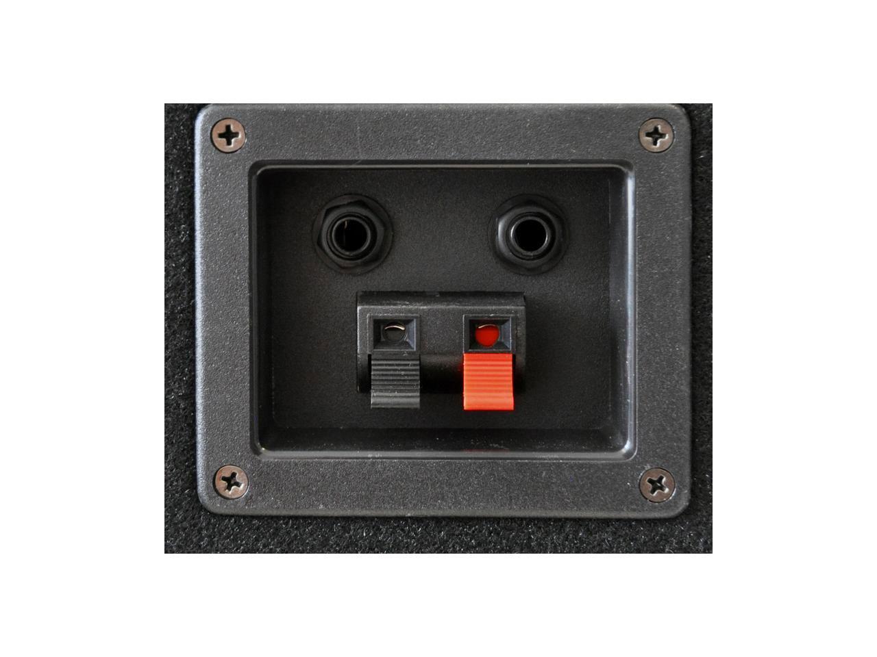 Vhodný na pódia a transport díky po bocích zapuštěným tyčovým držadlům, filcovému potahu odolnému proti poškrábání a kovové ochranné mřížce