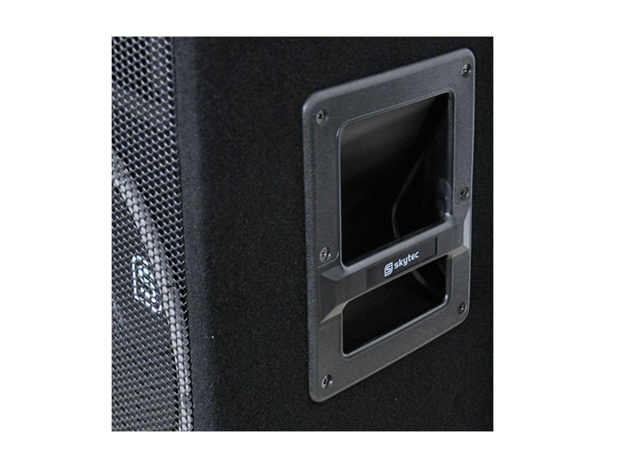 Dvoukanálový reproduktor může být namontován na stojato nebo na ležato podle prostorových možností a specifických požadavků akce. Díky kompaktním rozměrům a po stranách zapuštěným držadlům může být zařízení rychle smontováno, rozmontováno a přestavěno. Konstrukce reproduktoru Skytec, vhodná na pódia a transport, efektivně chrání před poškozením.