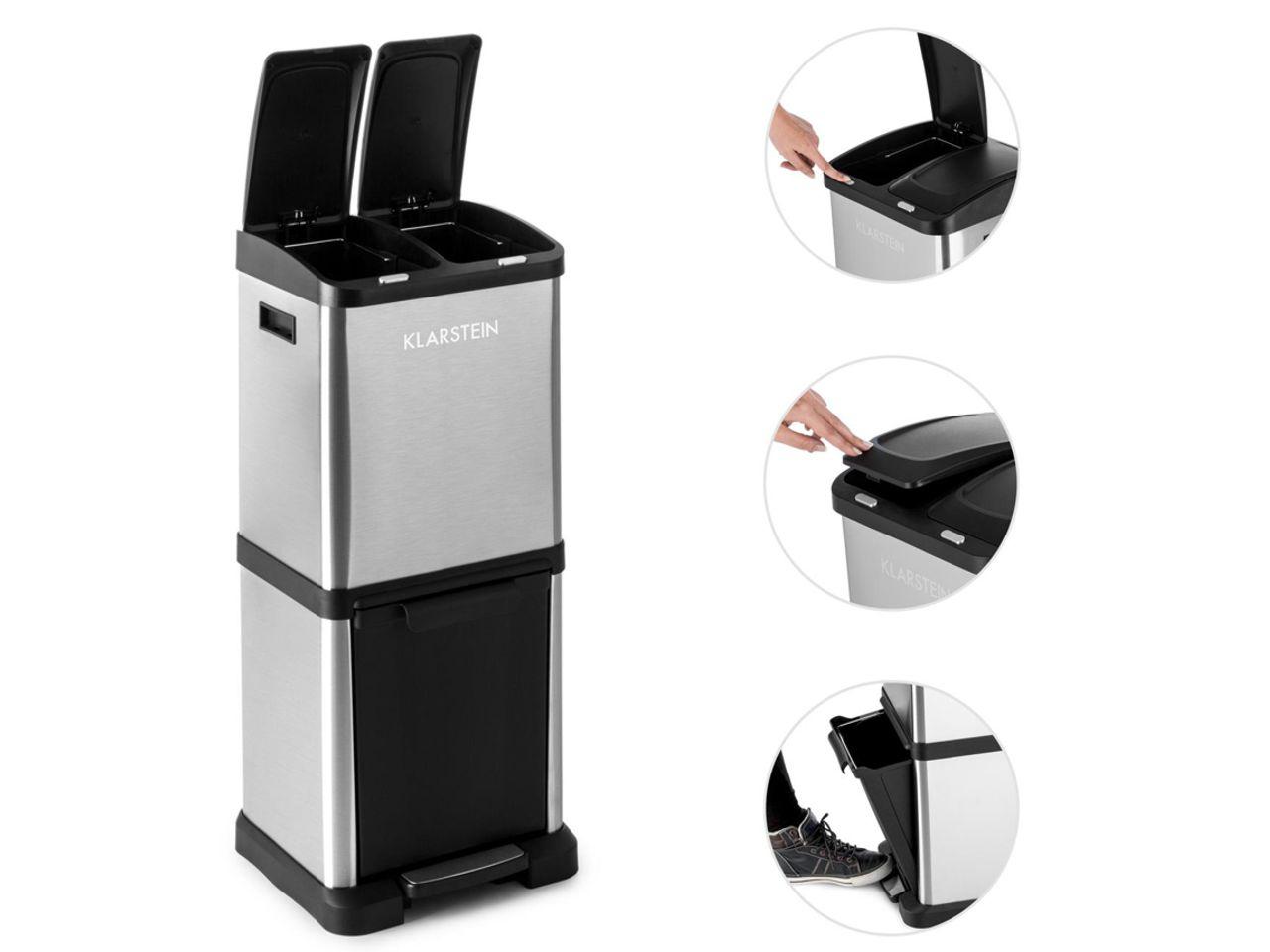 Třídění odpadků je tak jednoduché: Klarstein Ökosystem2 nášlapný odpadkový koš spolkne bez řečí všechny odpadky a uskladní je ve svém třídílném vnitřním prostoru.