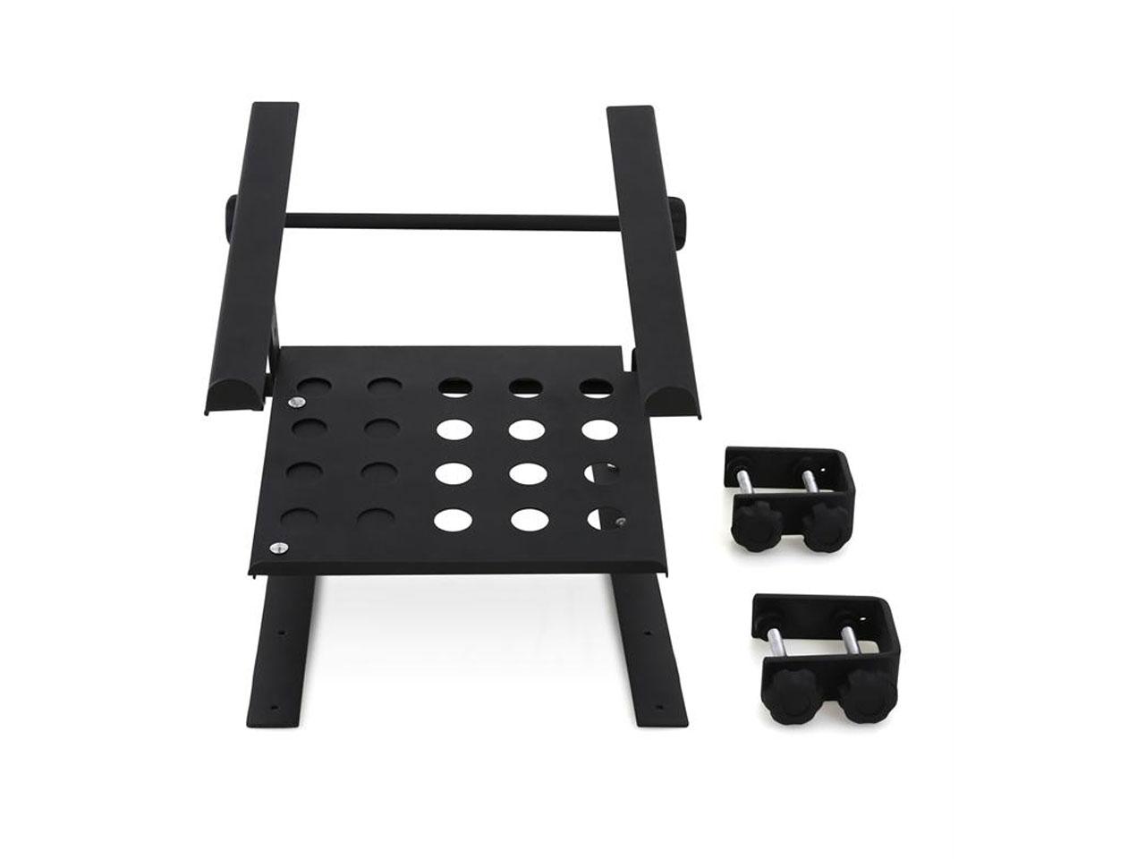 Resident DJ stojan na laptop je možné použít volně stojící, ale lze jej také při omezení mobility ve prospěch stability připevnit pomocí dodávaných svorek v závislosti na orientaci hran stolu nebo DJ rakví. Přitom se notebookový držák bezpečně uchytí s obzvlášť bezpečnými dvojitými svorkami na desky s tloušťkou až do 5 cm.