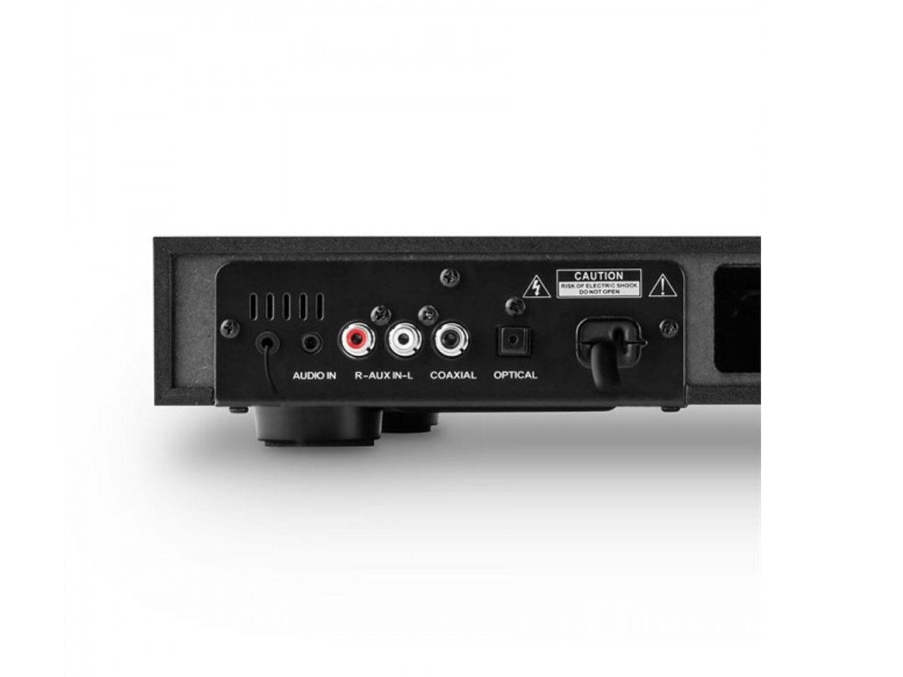 Co se týče připojení, je možné připojit různé zdroje signálu. Kromě optického a koaxiálního digitálního vstupu má zařízení stereo cinch vstup a 3,5mm jack konektor pro připojení například MP3 a CD přehrávačů a mobilních telefonů. Rozhraní bluetooth bezdrátově komunikuje se smartphony, tablety a laptopy, boční MP3 USB rozhraní připojuje USB klíče a MP3 přehrávače Další výhodou přitom je, že se připojená zařízení přímo zásobují proudem. Systém soundbase má značnou výhodu ve velikosti a je zvlášť efektivní tam, kde je nedostatek prostoru a kde je nežádoucí vedení kabelů. Takže lze přímo na zařízení Auna Stealth Bar 70 umístit například připojený televizor (max 75 kg).