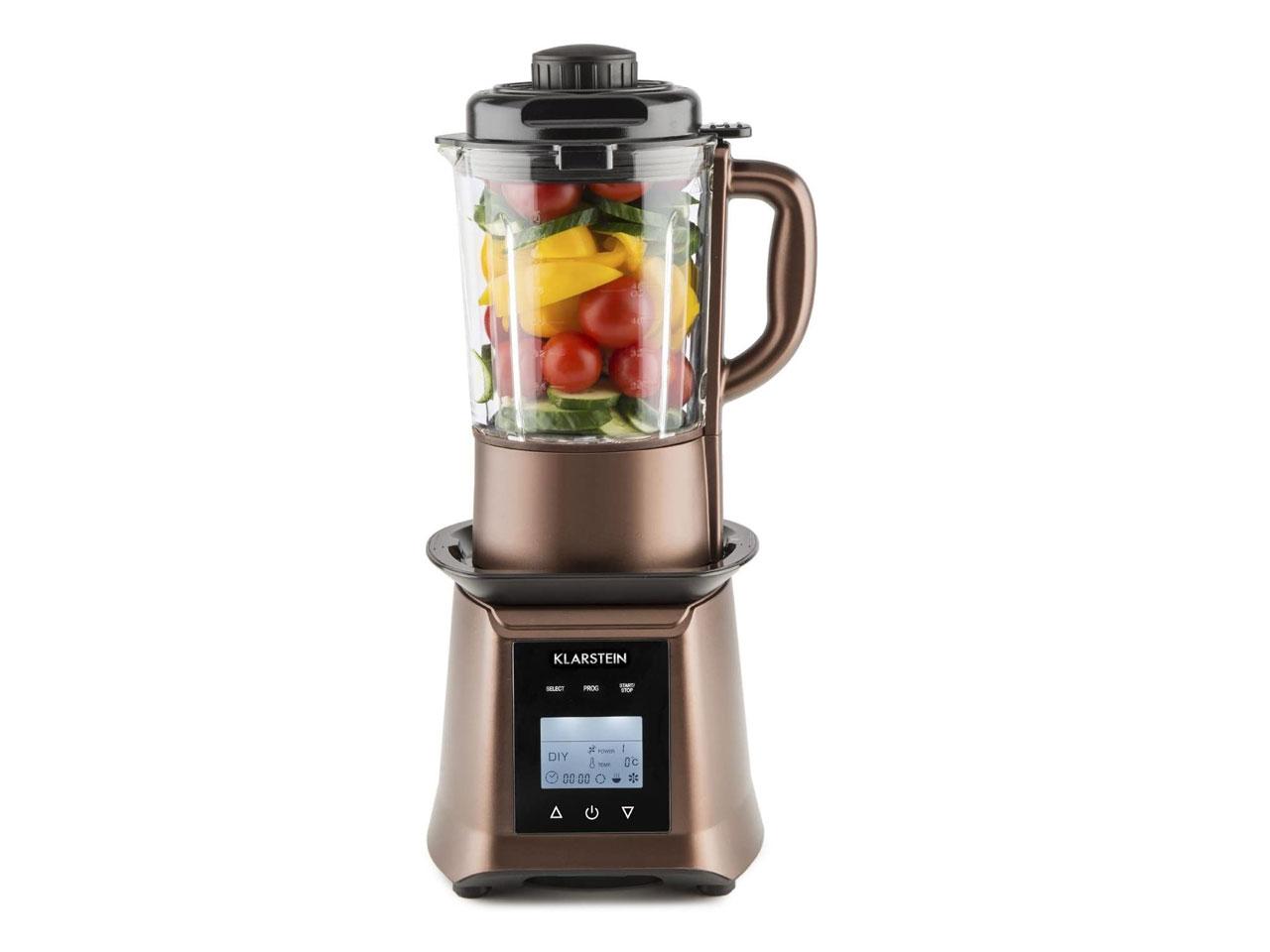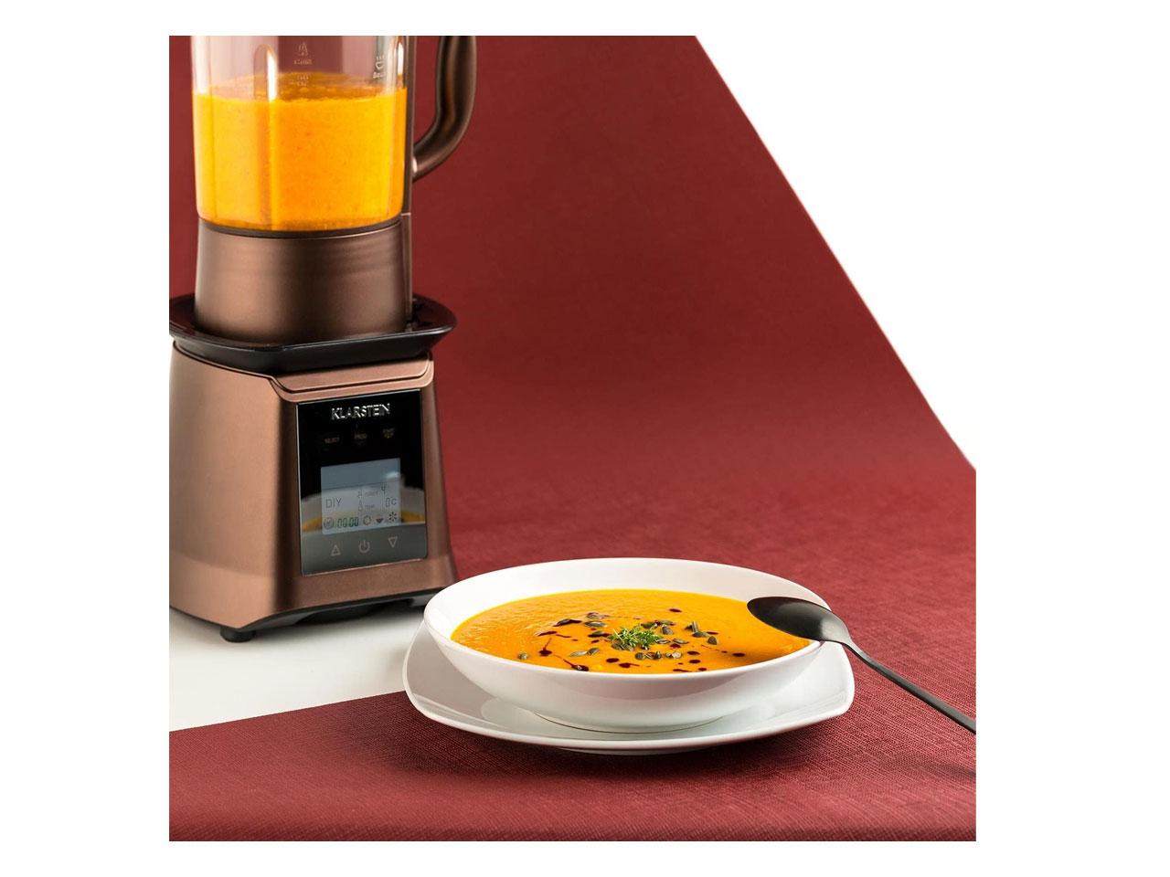 Co to v kuchyni tak lahodně voní? Samozřejmě, vydatná polévka z Klarstein Herakles polévkového mixéru! Horká, čerstvá a domácí - lépe to už nejde! Klarstein Herakles Heat polévkový mixér neotvírá brány pouze do světa drcení a mixování šťavnatých smoothie nápojů, krémových shaků a kořeněných dresinků. Integrované topné těleso kombinuje jeho standardní funkce šikovně se světem vaření a umožňuje tak přípravu lahodných polévek, sladkých kaší a chutných krémových polévek přímo z přístroje. Celý popis