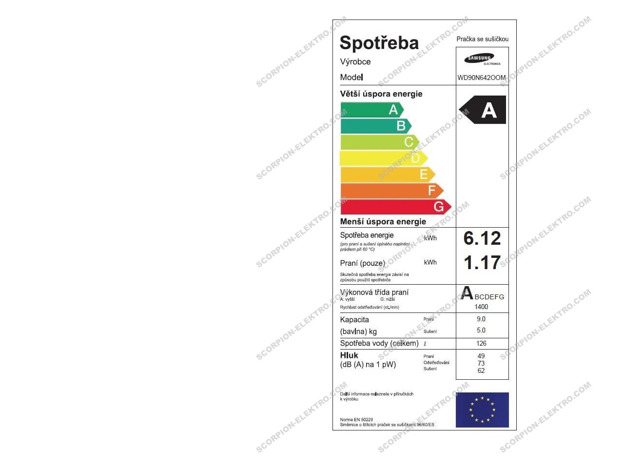 Spotřeba energie: 6,12 kWh/cyklus