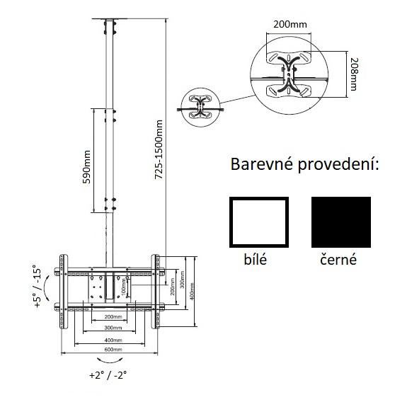Nastavitelná vzdálenost od stropu: 725 mm - 1500 mm