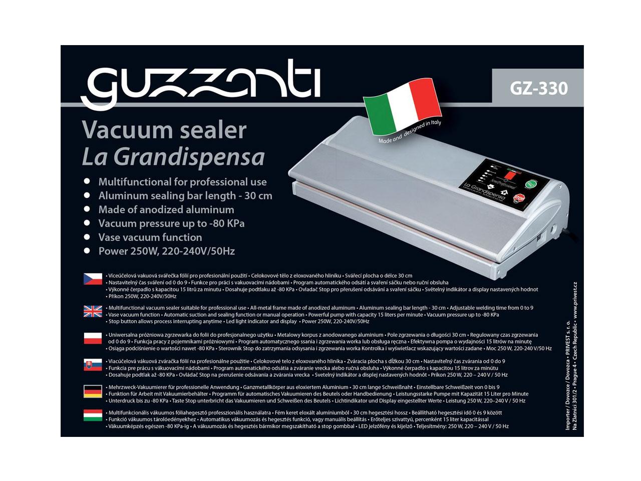Vakuová svářečka fólií Guzzanti GZ 330. Víceúčelová vakuová svářečka fólií pro profesionální použití. Celý popis
