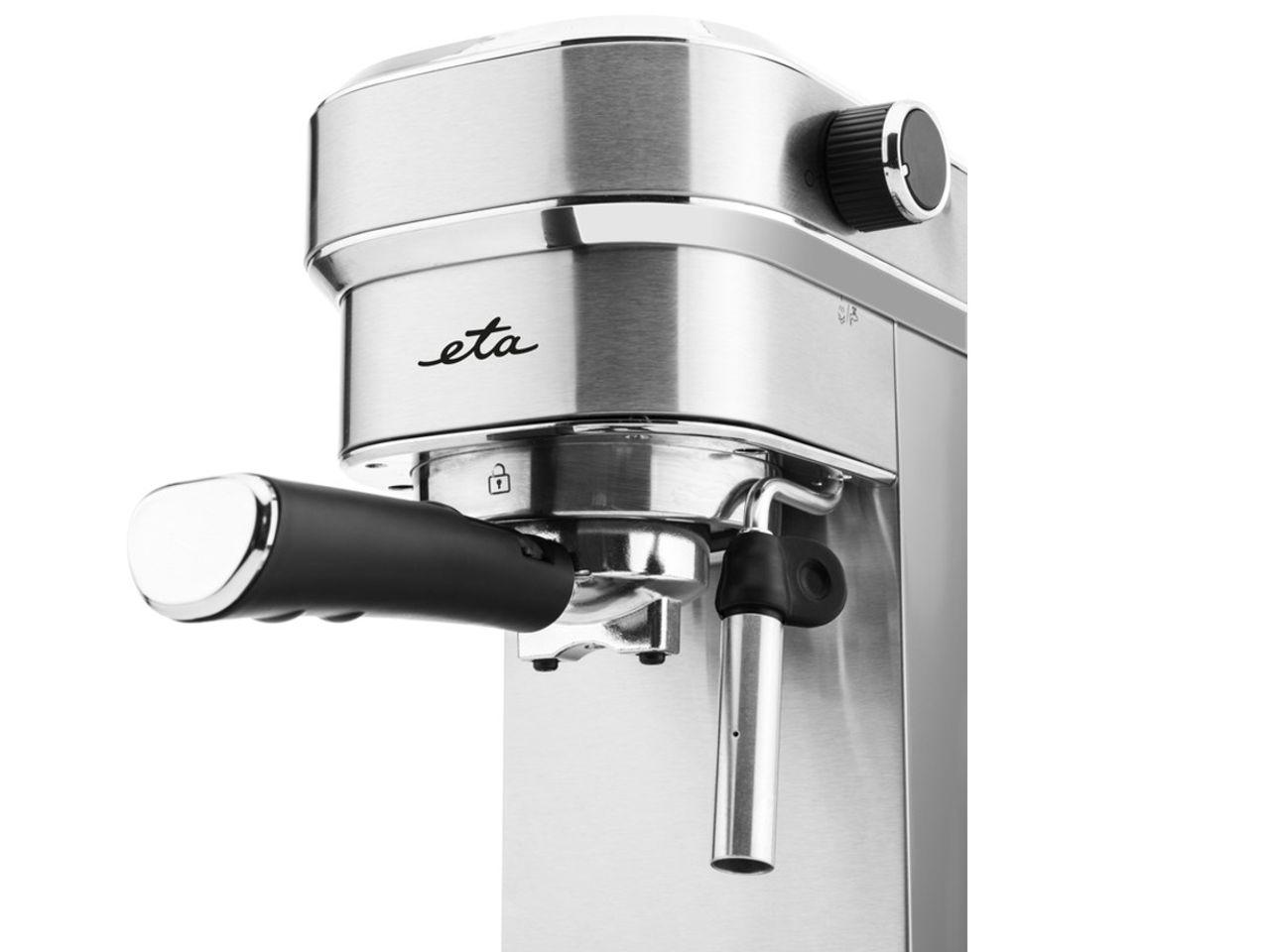 Pákový espressovač na mletou kávu ETA Stretto v elegantním nerezovém designu vám díky příkonu 1350 W dopřeje oblíbený životabudič přesně tak, jak ho máte rádi. Kromě přípravy lahodné kávy můžete využít funkci horké vody, se kterou hravě připravíte čaj a jiné teplé nápoje. Kávovar umožňuje individuální nastavení množství a objemu kávy pro jeden nebo dva různě velké šálky. Praktický slim design o šířce základny 14,5 cm vám usnadní jeho umístění, kamkoliv si budete přát.