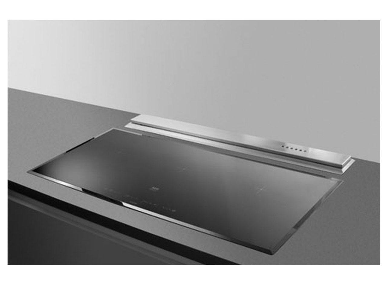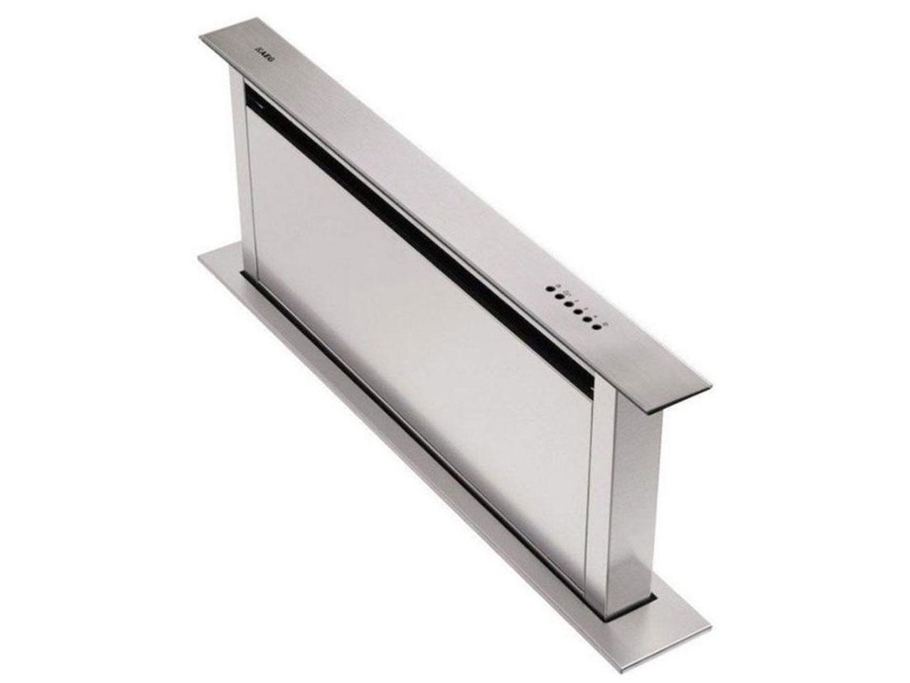 Zapuštěný odsavač AEG DH1690-M. Než přijde jeho čas, zůstane v úkrytu pracovní desky. Pracuje účinně a bez zbytečného hluku. Snadno se ovládá a nikde nepřekáží. Celý popis