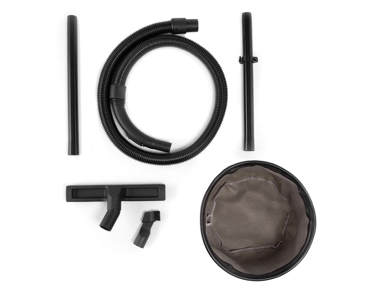 Silný výkon 1200 W si bez nejmenších problémů snadno poradí s vysáváním prachu, bláta či špinavé vody, které se shromažďují v nerezovém zásobníku o objemu 30 litrů. Při mokrém vysávání práci výrazně usnadní metlovitá násada a pryžová stěrka na setření zbytků vody. Velký objem zásobníku garantuje pohodlné vysávání velkých ploch bez nutnosti opakovaného vyprázdnění jeho obsahu. Po svinutí hadice se zařízení změní na praktické dmychadlo na odhrnování listí. Dva rychloupínací uzávěry bezpečně a stabilně upevňují motor na zásobníku a zároveň usnadňují i jeho vyprázdnění. Dvojitý filtrační systém filtruje špínu na drobné a hrubé částečky. Jemné částečky filtruje trvalý filtr, který stačí jen pravidelně vysypávat. Čtyři kolečka a horní rukojeť umožňují snadnou pohybovou manipulaci přístrojem. Extra dlouhý kabel s délkou 3,4 m zároveň přispívá k volnému pohybu s přístrojem.