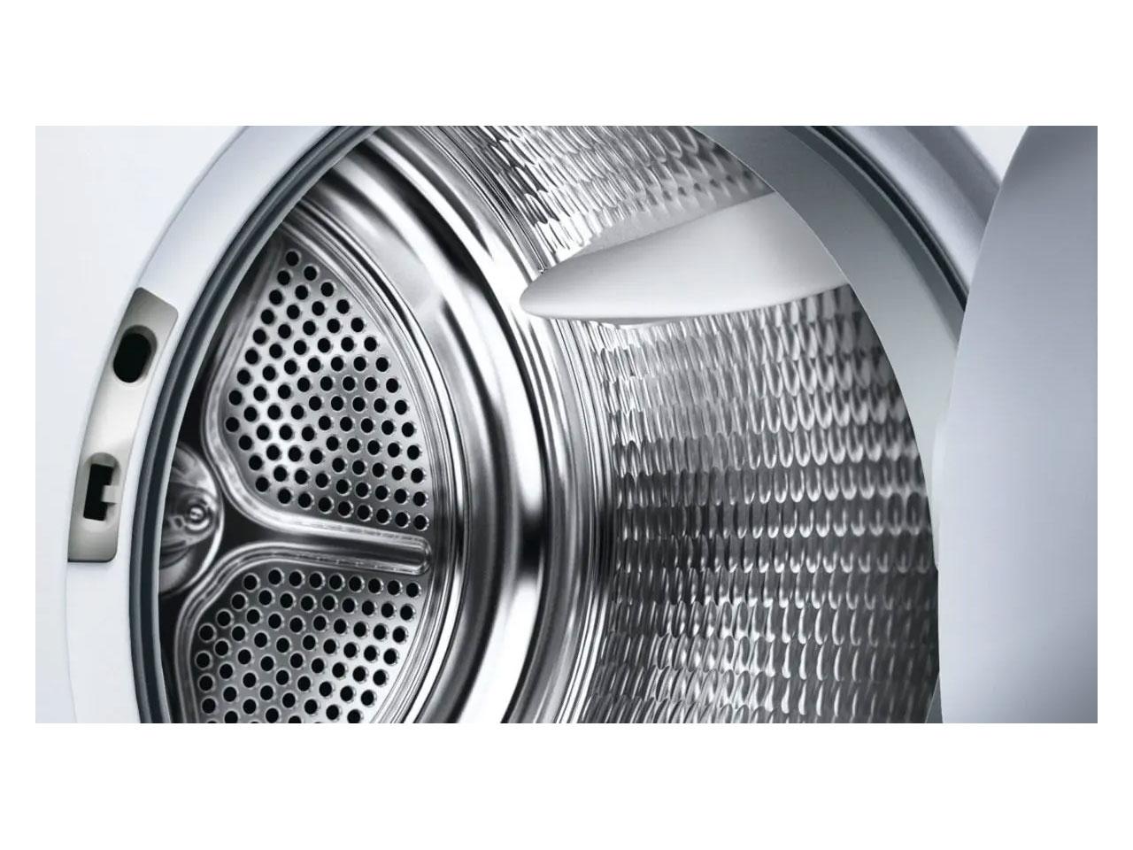 Na přehledném LED displeji můžete sledovat průběh programu, zobrazuje čas do konce programu a nastavené funkce. Přídavná funkce snadné žehlení zabrání pomačkání prádla. Pro choulostivé prádlo nastavíte funkci šetrného sušení. Na konci programu jste upozorněni akustickým signálem. Speciální antivibrační design zaručuje větší stabilitu sušičky a tišší chod při sušení. Pro lepší přehlednost je buben osvětlen.