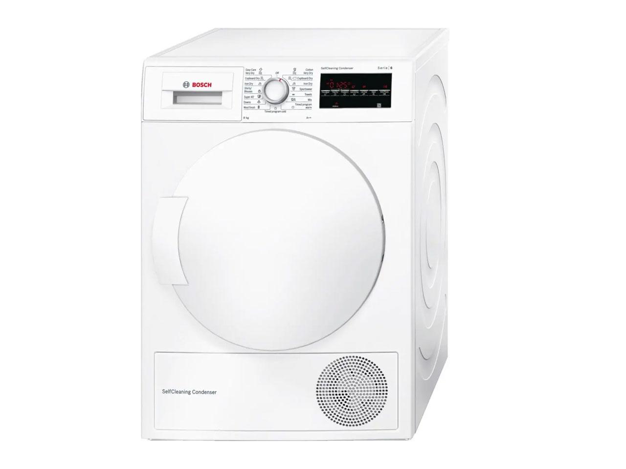 Kondenzační sušička prádla Bosch WTW83460BY v úsporné en. třídě A++ je určena pro 8kg prádla. Je vybavena tepelným čerpadlem a samočistícím kondenzátorem. Ovládání sušičky je velice snadné a intuitivní. Na výběr máte z 15 programů vč. extra krátkého 40 minut. Celý popis