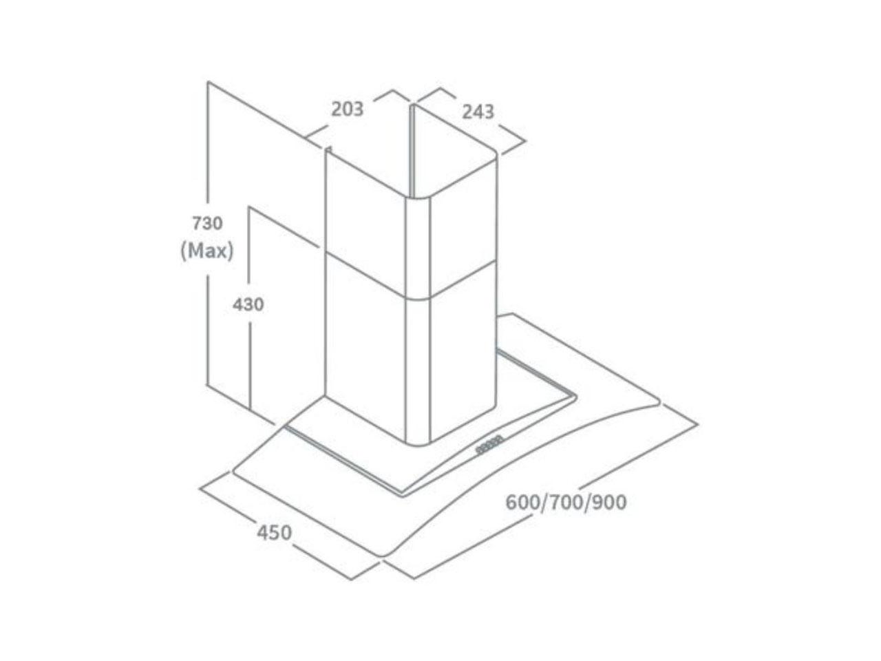 Skleněný komínový odsavač par PRIMA PRCGH013 se šířkou 90 cm a max. výkonem 278 m³ / h. Celý popis