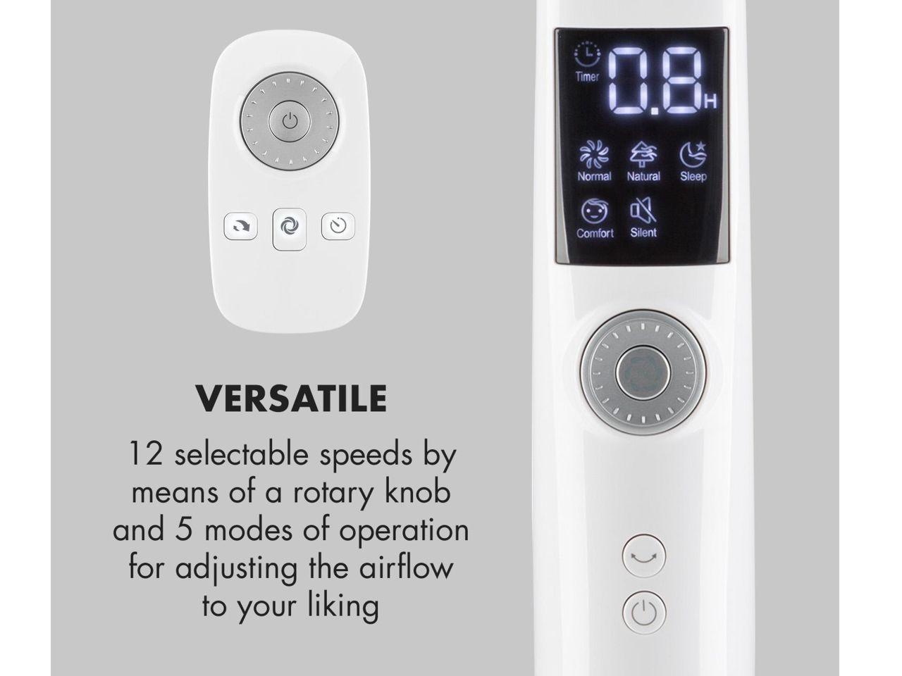 Stojanový ventilátor Klarstein Silent Storm svojí 16" vrtulí vytváří vánek, který účinně provane prostory s objemem do 80 m³. Na výběr máte až 12 rychlostních stupňů osvěžení, které rozmetou horký vzduch během léta. Příjemnou změnu zabezpečuje 5 ventilačních režimů, které začínají simulací přírodního vánku, procházejíce přes noční režim s automatickým vypnutím, přes tichý režim potřebný při koncentraci, až končí režimem komfortu, který zapne ventilátor jen při teplotách nad 20°C. Rovněž máte k dispozici časovač odloženého zapnutí / vypnutí, celkově 12 hodin nastavitelných po 30 minutových krocích.