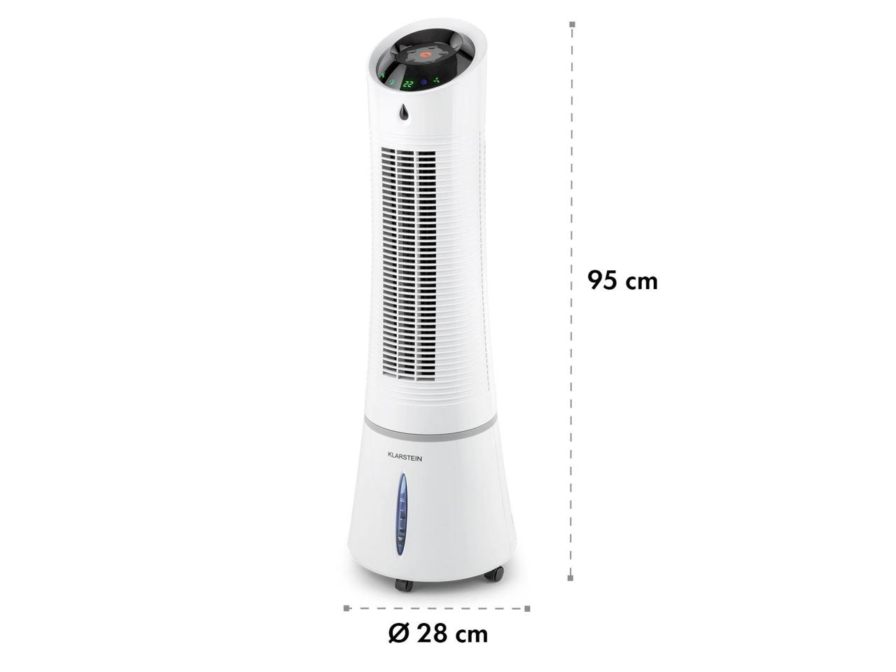 4 v 1 Skyscraper Ice od společnosti Klarstein vizuálně i výkonnostně převýší své kolegy a přináší do Vašich pokojů čerstvý vzduch. Osvěžující netradiční konstrukce je inspirována zářivě černým mrakodrapem a již svým tvarem a barvou podpoří touhu po chladném, čerstvém vzduchu a jemném vánku. Prostorově úsporná věž ukrývá hned funkce tří zařízení, šikovně sjednocuje ventilátor, chladič a zvlhčovač vzduchu. Ve svém nejširším místě měří stojící ventilátor jen 28 cm a hodí se tedy i do malých prostor. Celý popis