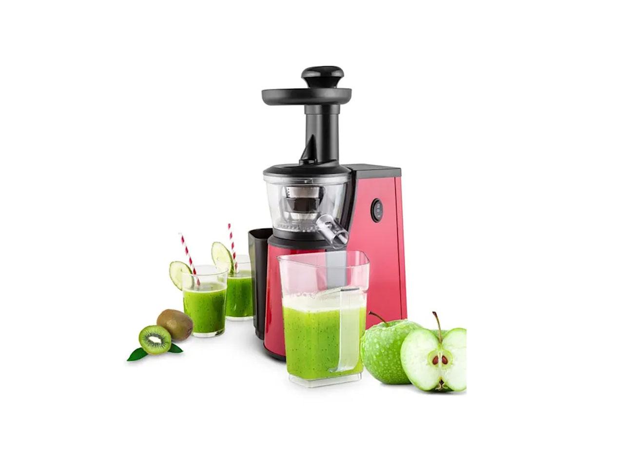 červená konstrukce z nerezové oceli umožňuje zařízení SlowJuicer zazářit v každé kuchyni i vzhledově.