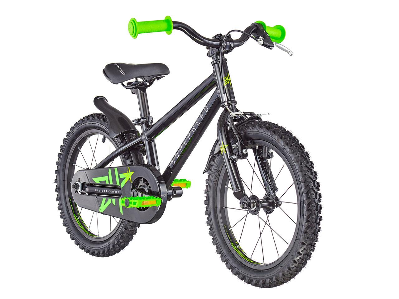 Serious přesně ví, co chtějí malí cyklisti. Superhero předvádí přilnavé profilované pneumatiky, řidítka rizer, stylové motokrosové blatníky a rychloupínáky na sedlovce - stejně jako ty velké. Spoléhá se na hladce běžící V-brzdu na přední kolo a osvědčené zpětné šlapání na zadním kole. Jednosměrný pohon s velkým krytem řetězu je vše, co na tomto motocyklu potřebujete. Tímto způsobem zůstanou malí hrdinové na kole pod kontrolou a jejich nohavice zůstanou čisté.