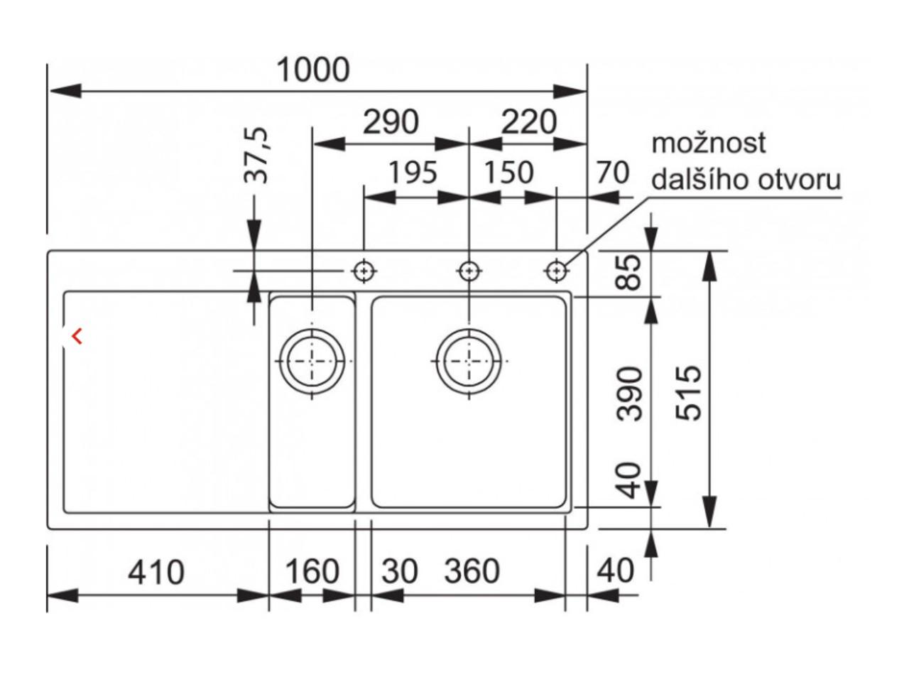 Rozměr dřezové nádoby: 500 x 390 x 200 mm