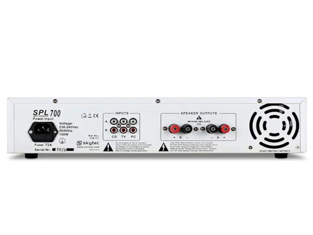 Skytec SPL 700 MP3 je kvalitní PA a Hi-Fi zesilovač, který s sebou přináší nepřekonatelně stylový design. Mrzuté a životem unavené černé a šedé barvy byly u modelu SPL 700 MP3 nahrazeny svěží a zářivou konstrukcí v bílé barvě.