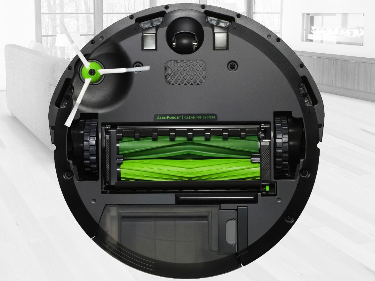 Roomba je vybavena velkokapacitním sběrným košem na nečistoty, který zachytí s pomocí AeroForce filtru i nejjemnější prachové částice. Navíc lze tento nový koš také vypláchnout vodou pro ještě jednodušší údržbu.