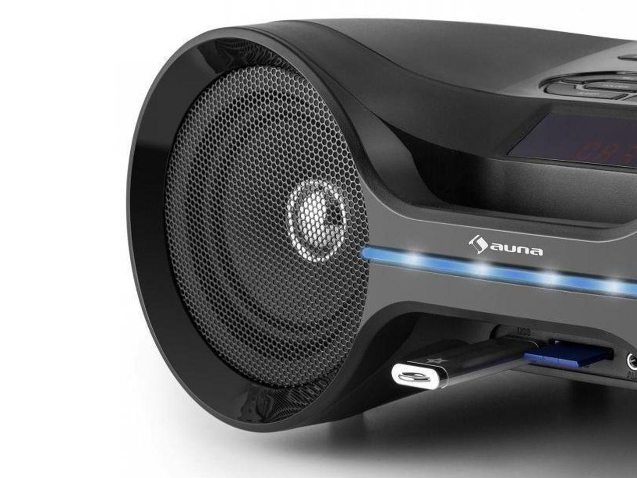Díky nízké hmotnosti, v konstrukci vestavěné rukojeti a volitelně dostupného akumulátoru se etabloval Ghettoblaster Auna Boombastic jako stylový společník na cestách.