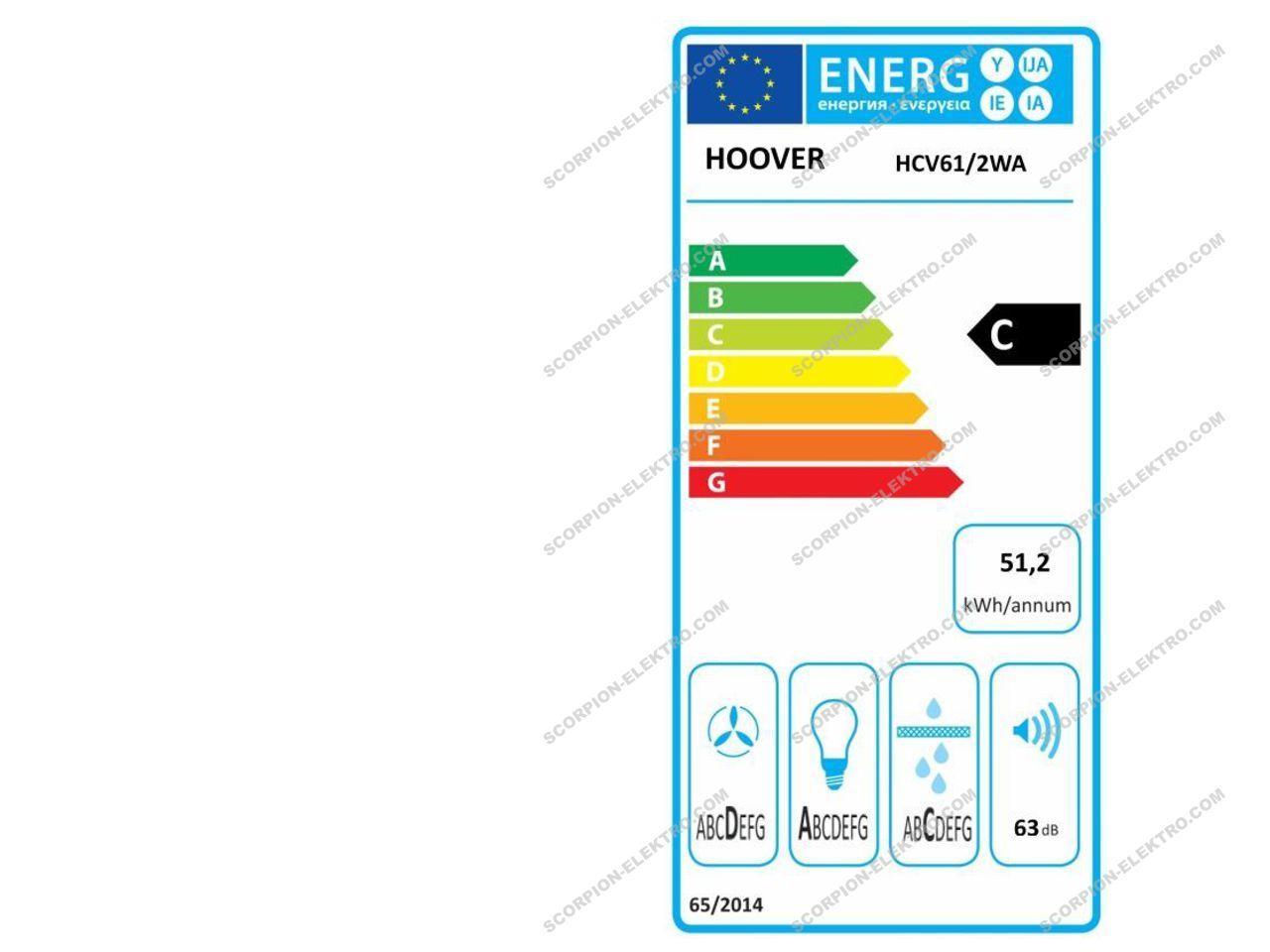Pro regulaci výkonu digestoře je k dispozici nastavení rychlosti odsávání ve 3 stupních s maximální výkonem 456 m3/h. Pro dokonalé osvětlení varné plochy odsavač par Hoover HCV61/2WA disponuje dvěma 2W LED žárovkami s dlouhou životností.