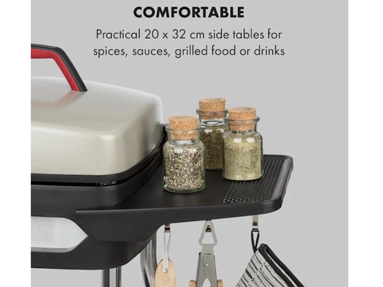 Pohodlný: praktické stolky s rozměry 20 x 32 cm na koření, omáčky, grilované jídlo nebo nápoje