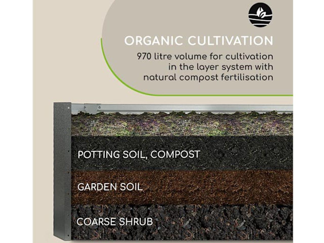 Ekologické pěstování: objem 970 litrů pro pěstování v systému vrstev s přirozeným hnojením kompostem