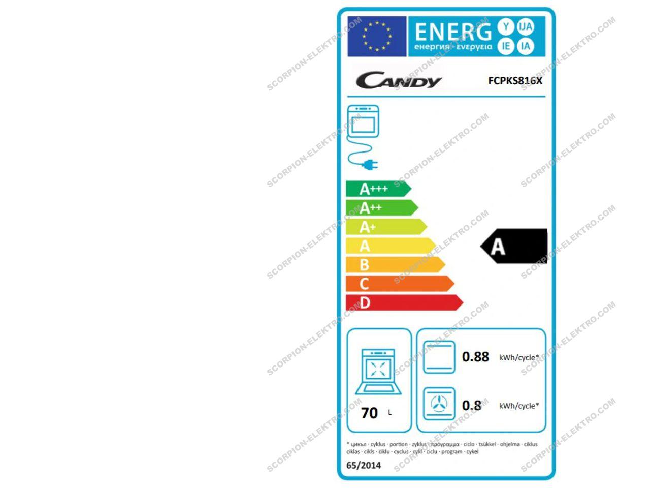 Samostatná vestavná trouba v energetické třídě A s celkovým objemem 70 l, 9 funkcemi a digitálním dotykovým displejem v podobě elektronického programátoru a ovládání. Candy FCPKS816X/E disponuje dveřmi se třemi vysoce izolovanými skly. Celý popis