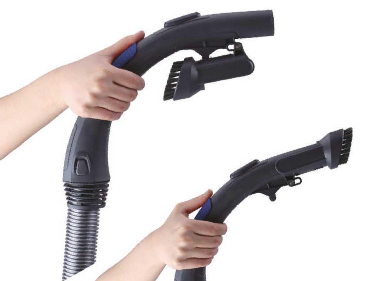 Integrované příslušenství přímo na sací trubici je praktické pro okamžité použití. Využít můžete hubici na nábytek a štěrbinovou hubici. S pomocí výklopného prachového kartáče můžete stírat prach z nábytku a citlivých povrchů.