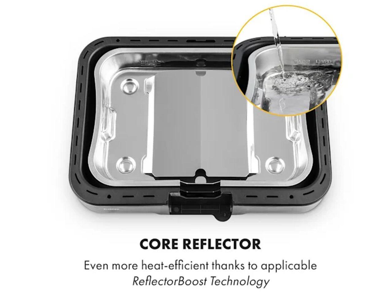 Reflektor s funkcí odkapání: tuk odteče do vodní lázně