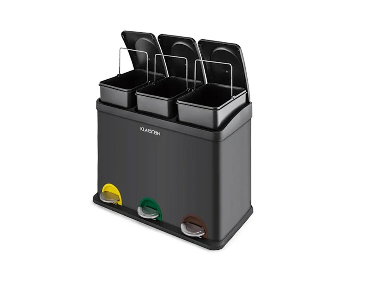 Třídění odpadků je tak jednoduché: Klarstein Ökosystem nášlapný odpadkový koš spolkne bez frflání všechny odpadky a uskladní je ve svém třídílném vnitřním prostoru. Celý popis