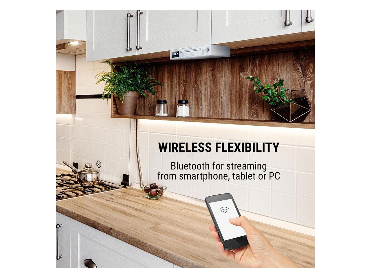 Funkce WLAN umožňuje bezdrátový příjem nesčetných internetových rádio stanic, získáte přístup k více než 14 000 rozhlasovým stanicím na celém světě. Díky barevnému HCC displeji s vysokým rozlišením vždy uvidíte čas, rádio stanici, skladbu či informace o počasí. Pomocí rozhraní bluetooth můžete jednoduchým způsobem streamovat i hudbu ze smartphonu, tabletu nebo PC a přehrávat ji přes reproduktor. Zabudovaný CD přehrávač přehrává nejdostupnější formáty a zaujme svou jednoduchou obsluhou.